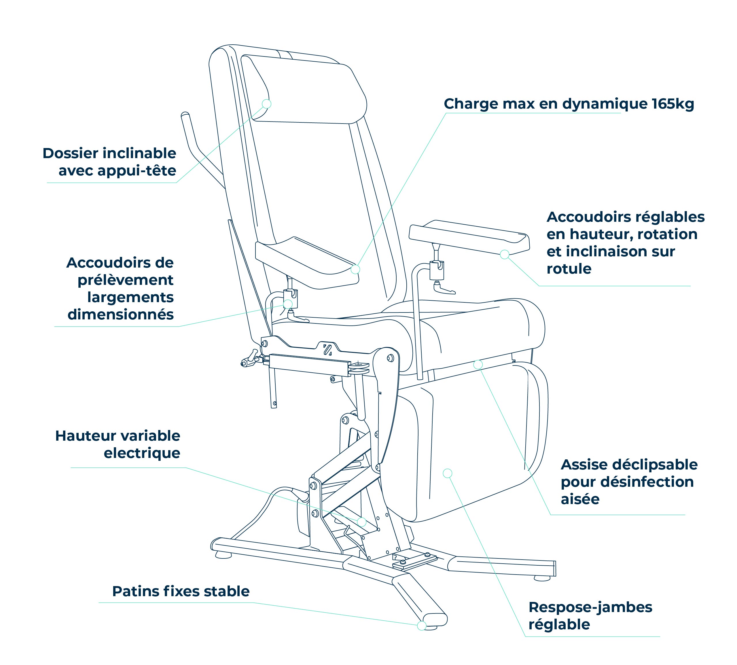 FAUTEUIL DE PRÉLÈVEMENT HAUTEUR VARIABLE ÉLECTRIQUE