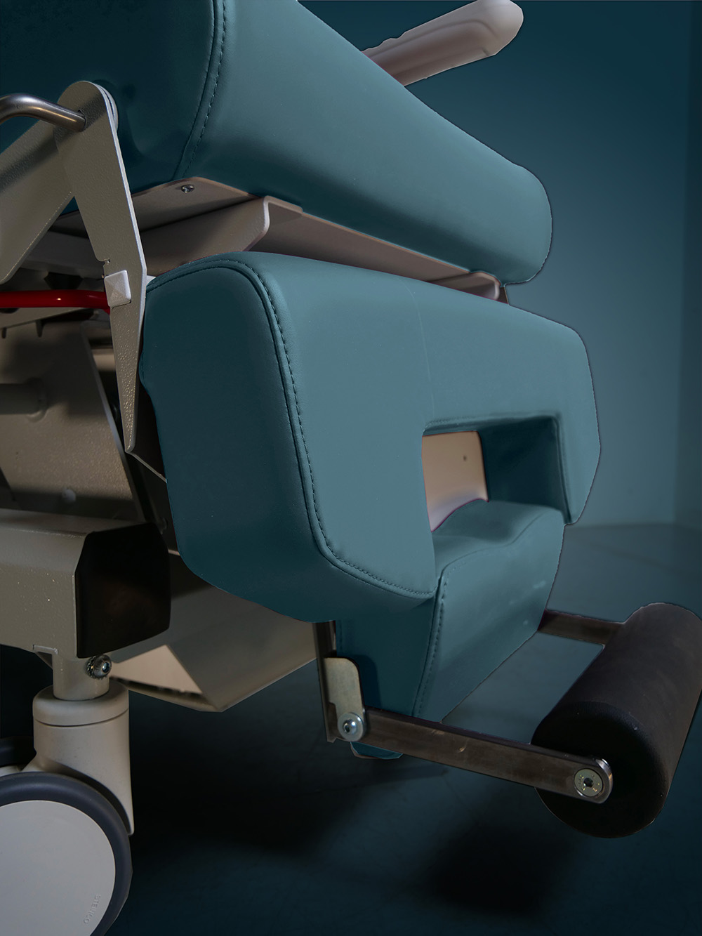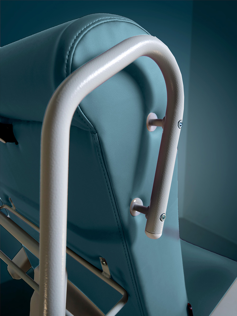 Assise généreuse, dossier ergonomique et grand guidon arrière pour un déplacement facile et une posture confortable pendant toutes les phases de soin.